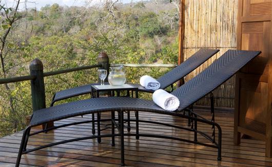 There is a spacious central dining room, lounge, library and bar, each having their own spacious timber and thatched chalets, which are interconnected by broad wooden walkways offering excellent views of the hippos and elephants on the riverbank. There is also a spectacular 'infinity' pool and sundeck.